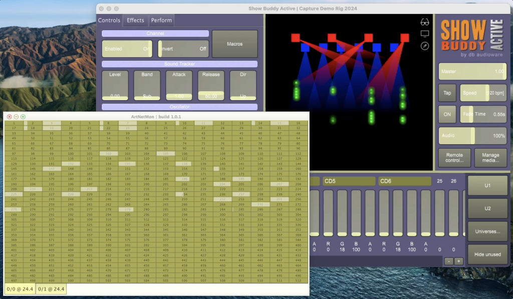 This also displays the data being sent to a USB interface box. It does not require you to use Art-Net to control your rig.